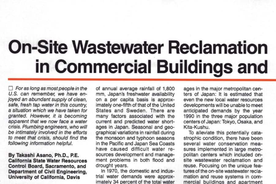El artículo titulado "On-site Wastewater Reclamation and Reuse Systems in Commercial Buildings and Apartment Complexes", publicado en la revista Plumbing Engineer en septiembre de 1986, puede descargarse aquí. [...]