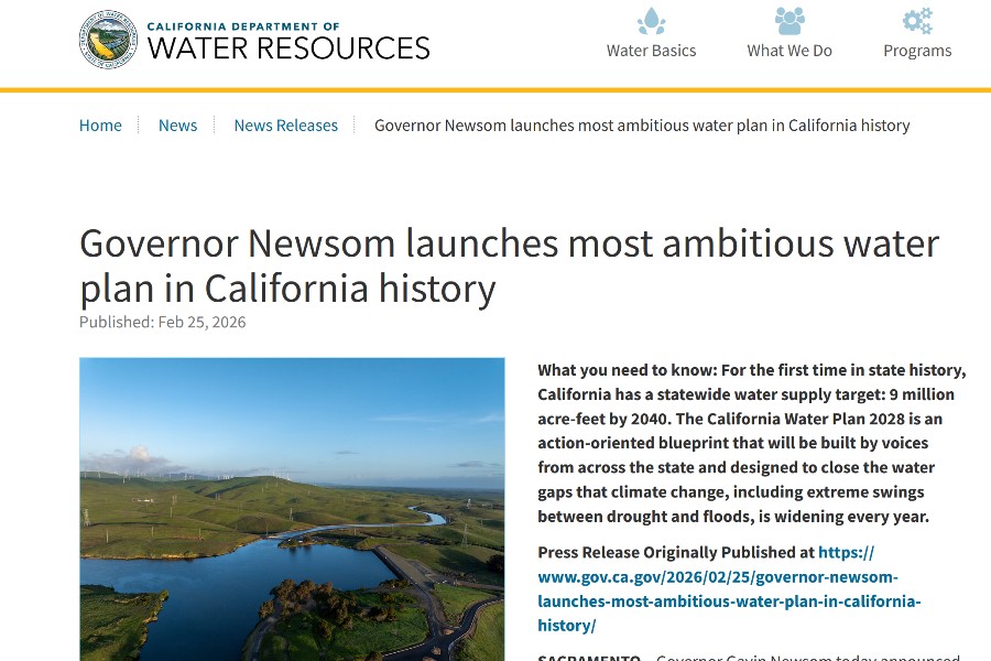 El portal del Departamento de Recursos Hídricos (DWR) de California anunció el pasado 25 de febrero la noticia titulada “El gobernador Newsom lanza el plan hidrológico más ambicioso de [...]