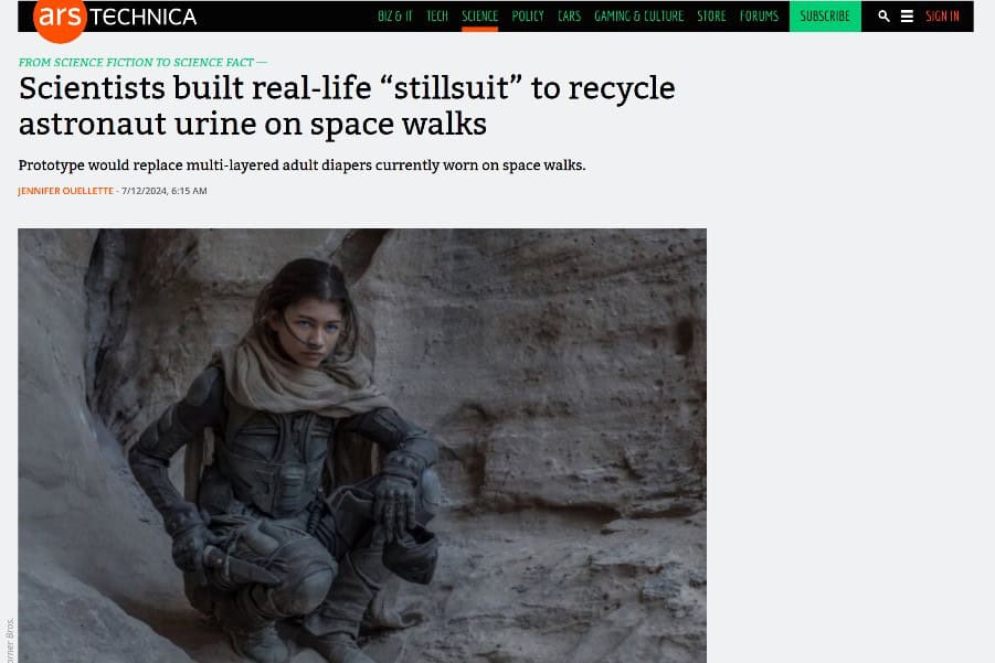 El portal arsTECHNICA publicó el pasado 12 de julio un fascinante reportaje de Jennifer Ouellette titulado “Los científicos construyen un verdadero traje protector para reciclar la orina de los [...]