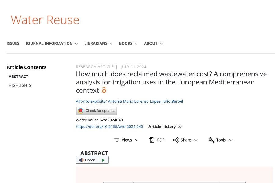 Coste del agua regenerada en el contexto mediterráneo europeo