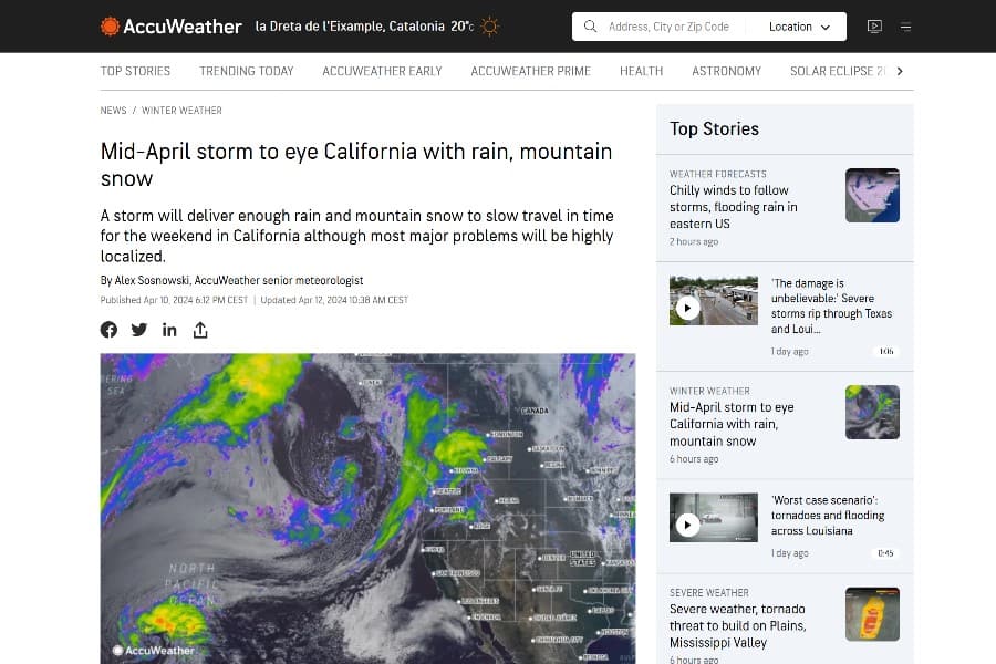 Borrasca de abril sobre California: lluvia y nieve en las montañas