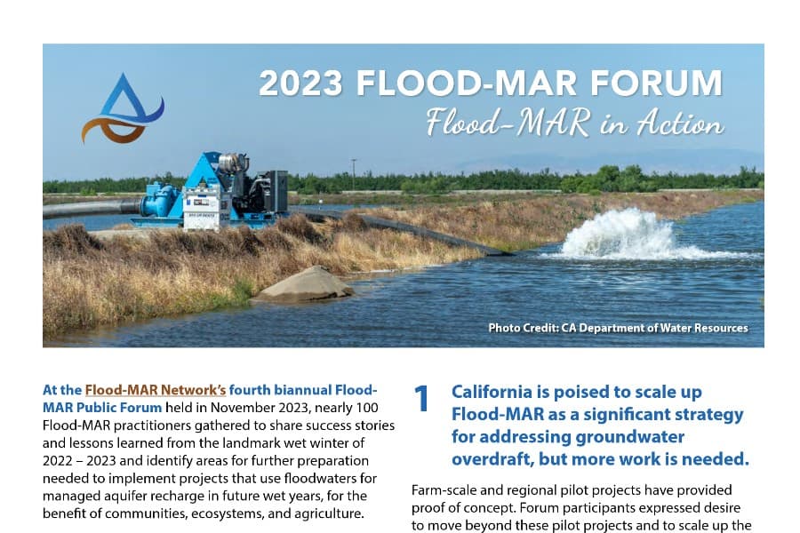La Red de Recarga Planificada de Acuíferos con Aguas de Inundación (Flood-MAR) ha publicado un resumen del Foro Público del Flood-MAR celebrado en 2023. Durante el Foro, los profesionales [...]
