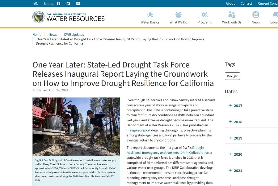 El portal del Departamento de Recursos Hídricos de California (DWR) publicó el pasado 24 de abril un informe titulado “Un año después: el grupo de trabajo estatal sobre la [...]