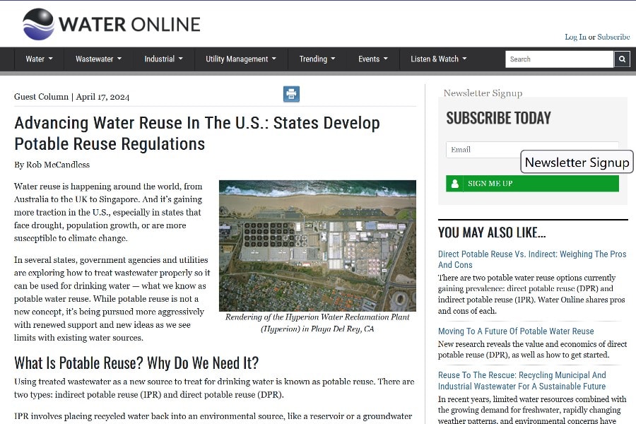 Retos y éxitos de la normativa sobre reutilización potable en California