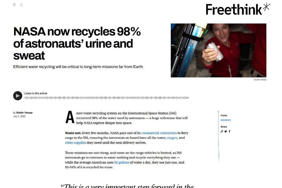 El portal FreeThink, en su edición del 2 de julio, publicó un interesante reportaje de Kristin Houser titulado “La NASA consigue reciclar un 98% de la orina y el [...]