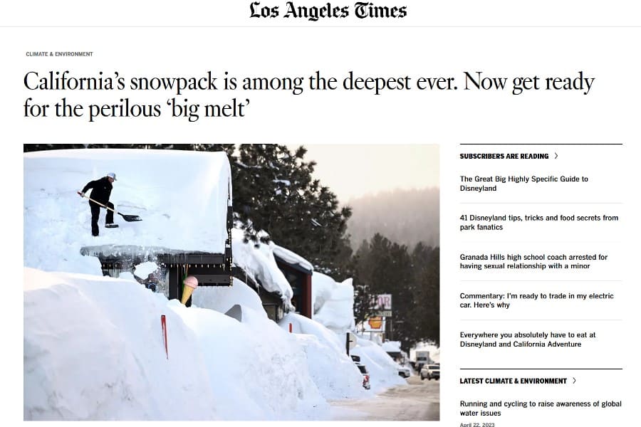 El portal del diario Los Angeles Times publicó el pasado 3 de abril un excelente reportaje de Sean Greene y Hayley Smith titulado “El espesor de nieve en California [...]