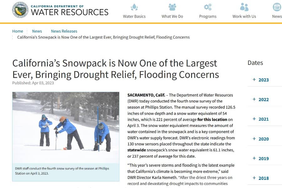 El portal del Departamento de Recursos Hídricos de California publicó el pasado 3 de abril la noticia titulada “California's Snowpack is Now One of the Largest Ever, Bringing Drought [...]