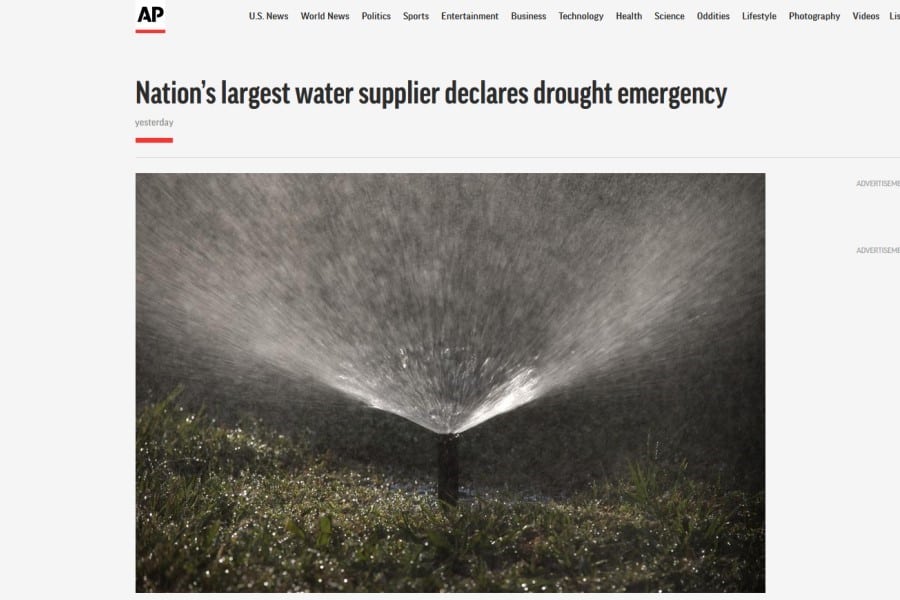 La agencia de noticias Associated Press (AP) ha publicado el jueves 15 de diciembre la noticia de que “El mayor suministrador de agua del país ha declarado la emergencia [...]