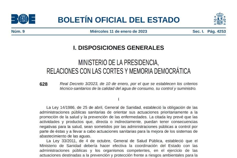 Real Decreto 3/2023 sobre aguas de consumo humano