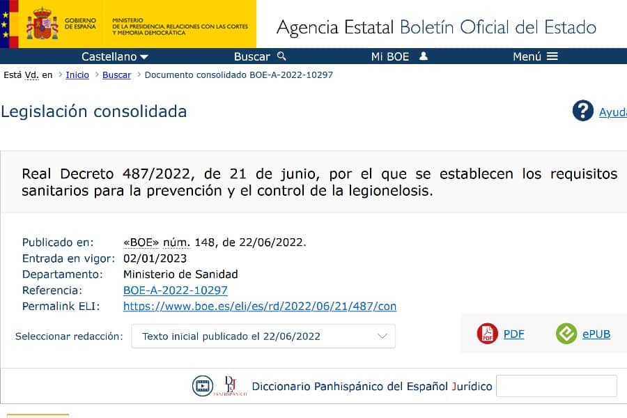 RD 487/2022 sobre prevención y control de la legionelosis