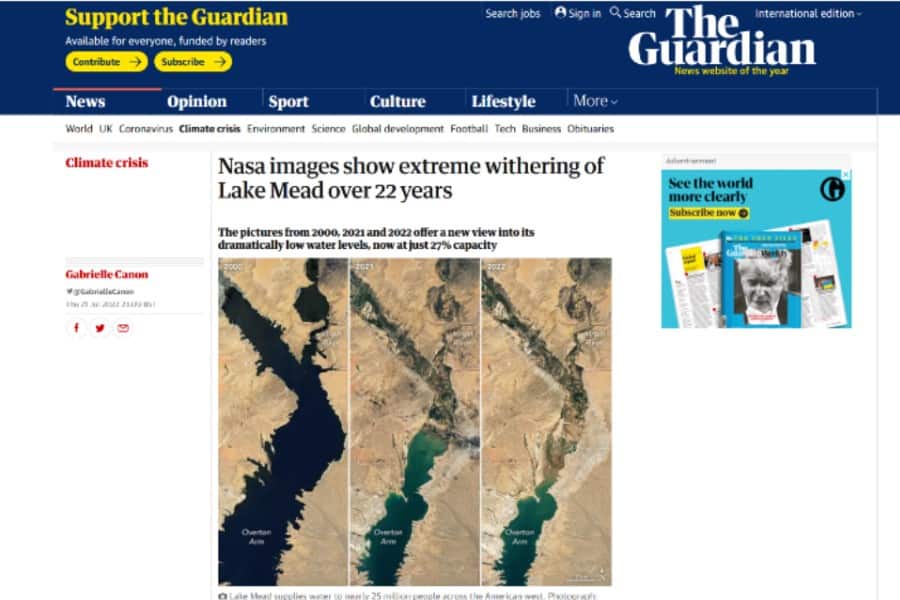 El portal digital del diario The Guardian, en su edición del pasado 22 de julio, muestra las impactantes imágenes del Lake Mead facilitadas por la NASA para los años [...]