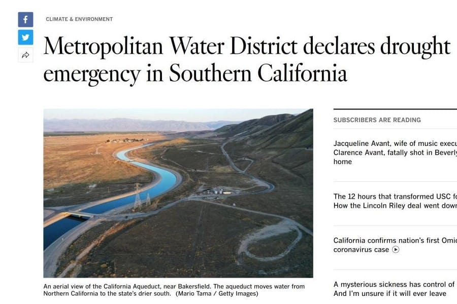 Declaración de emergencia por sequía en el Sur de California