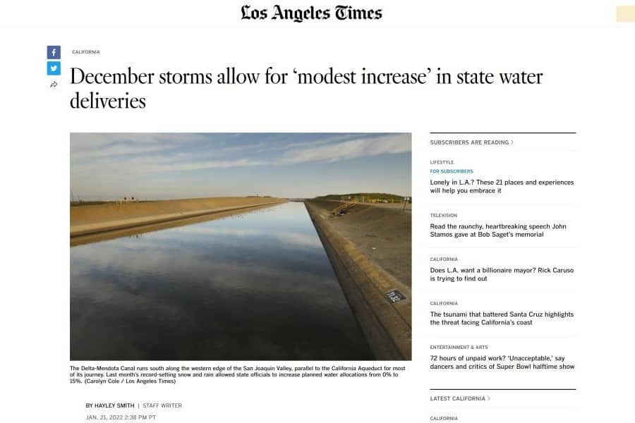 El Departamento de Recursos Hídricos de California (DWR) anunció el pasado miércoles 1 de diciembre las asignaciones iniciales de agua desde el State Water Project durante los primeros meses [...]