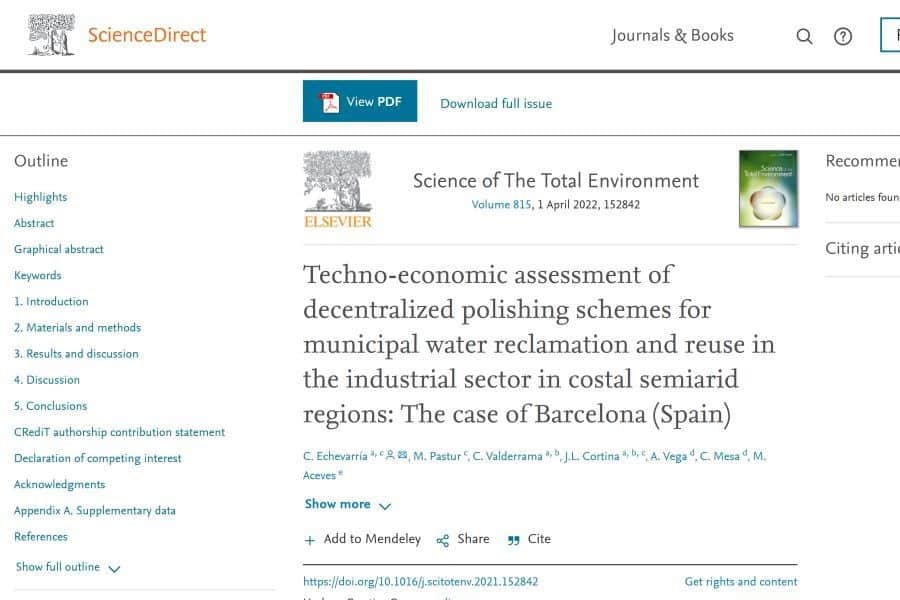 El portal Science Direct de Elsevier ha publicado en la revista Science of the Total Environment el interesante artículo de Carlos Echevarria et als. titulado “Techno-economic assessment of decentralized [...]
