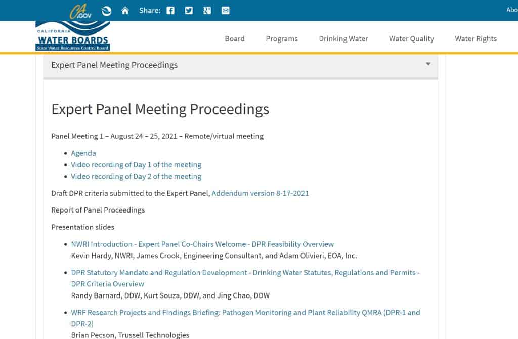 La División de Aguas de Consumo Humano (DDW) del Consejo Estatal del Agua está llevando a cabo una serie de mandatos legislativos relativos a la Reutilización Potable Directa (RPD). [...]