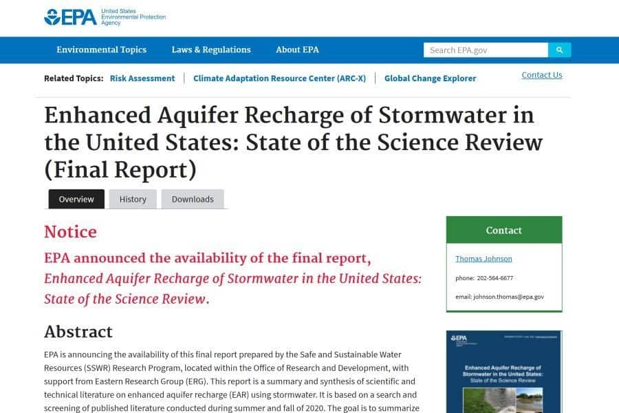 Recarga de acuíferos con agua de tormentas en los EEUU: informe final