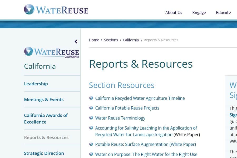 La página web de la WateReuse Association, en su sección de Informes y Recursos, ofrece a sus socios una serie de documentos de interés, agrupados en cuatro categorías: 1) [...]
