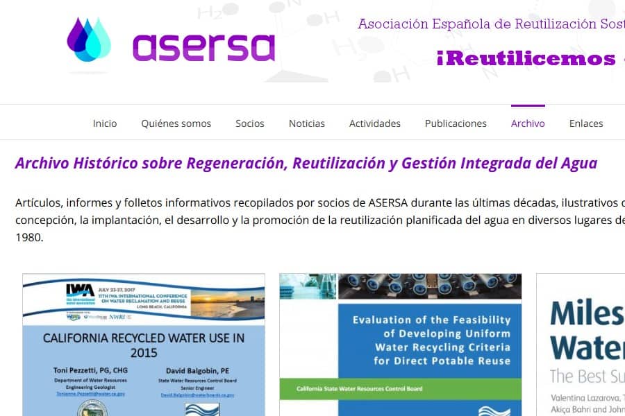 La página web de ASERSA ha incorporado una nueva sección, denominada Archivo, en la que se incluye un Archivo Histórico sobre Regeneración, Reutilización y Gestión Integrada del Agua. El [...]