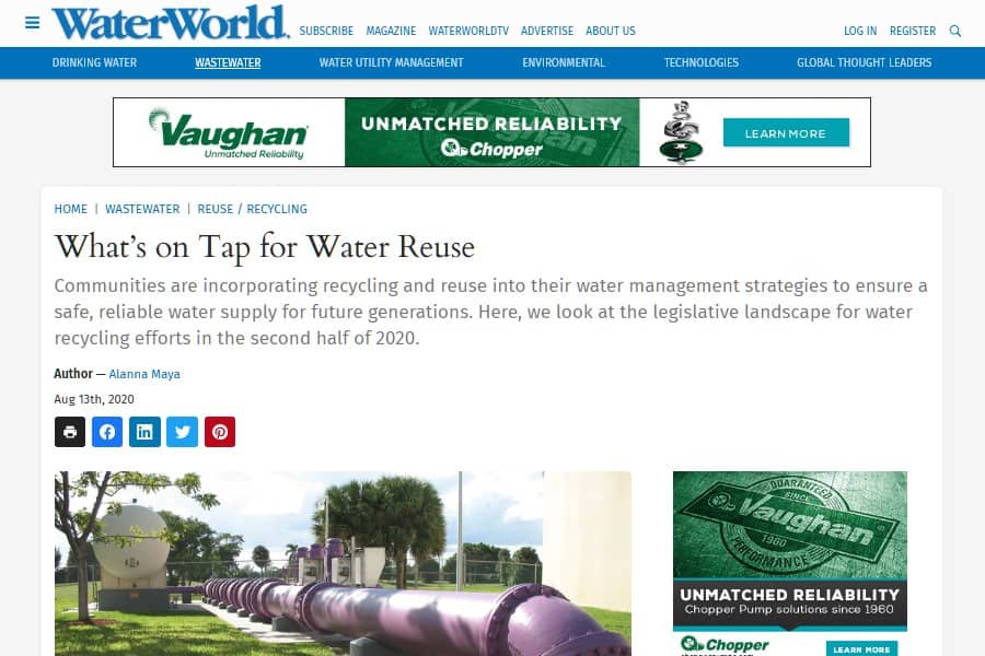 La complejidad legislativa de la reutilización del agua en los EEUU