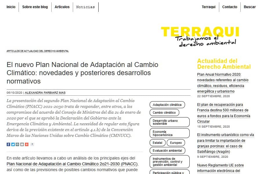 El blog Terraqui ha publicado el pasado 6 de octubre un interesante artículo titulado “El nuevo Plan Nacional de Adaptación al Cambio Climático: novedades y posteriores desarrollos normativos” en [...]