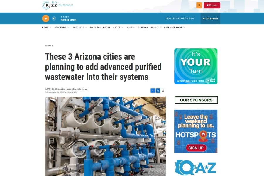 Tres ciudades de Arizona incorporarán agua purificada a sus abastecimientos