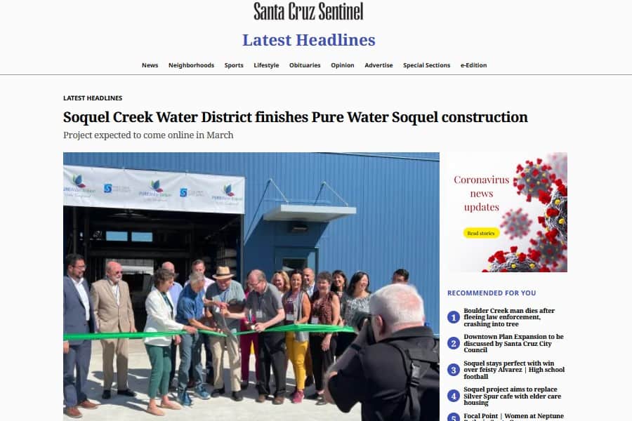 El portal del diario Santa Cruz Sentinel, en su edición del pasado 4 de octubre, publicó un excelente reportaje de P.K. Hattis titulado “Soquel Creek Water District ha completado [...]